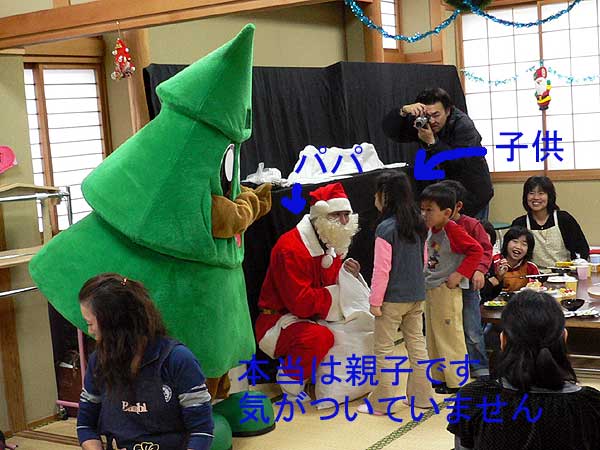 実はサンタさんとプレゼントをもらっている子供は、親子です。