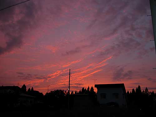 ものすごく赤い夕焼け、ちょっと不気味...。